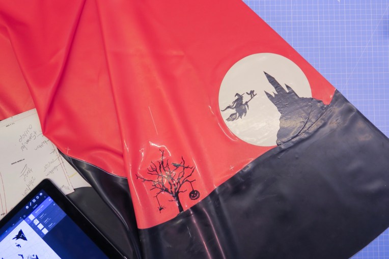 The halloween dress required a lot of detailed appliqué. This page describes the process I use to laser cut appliqués.