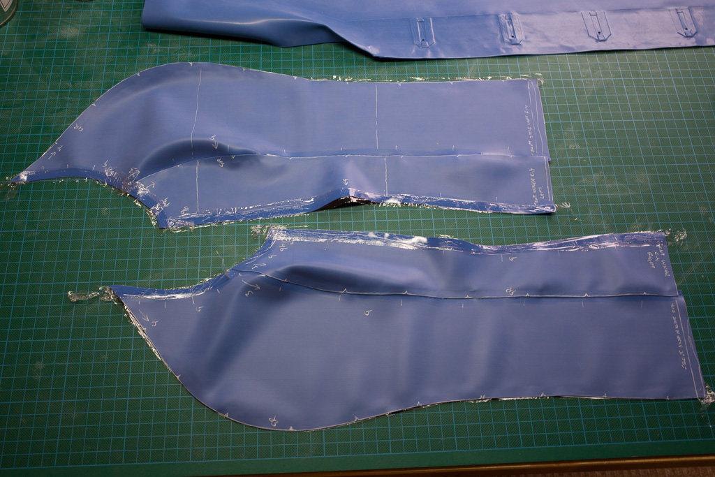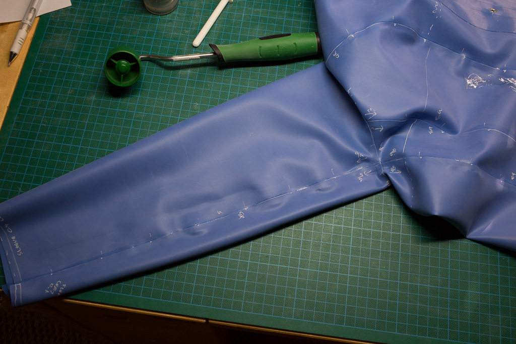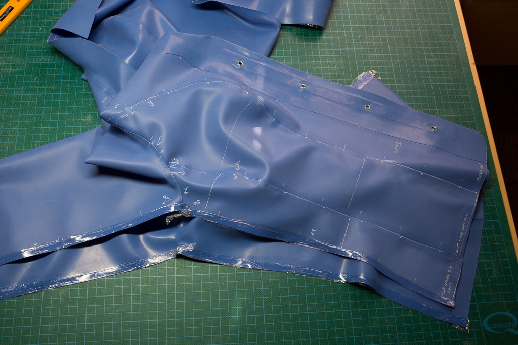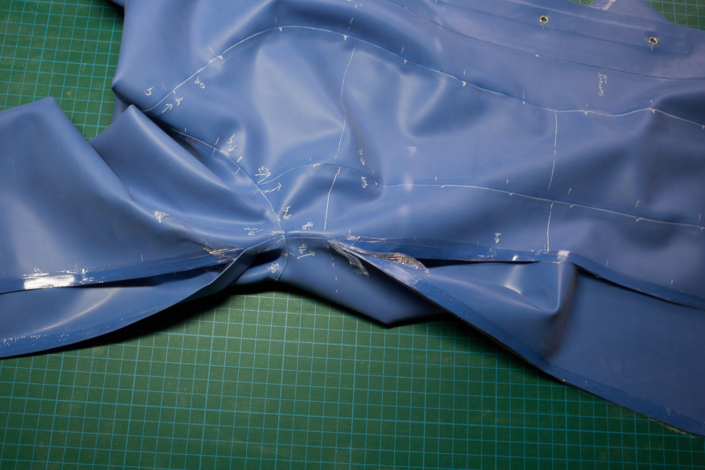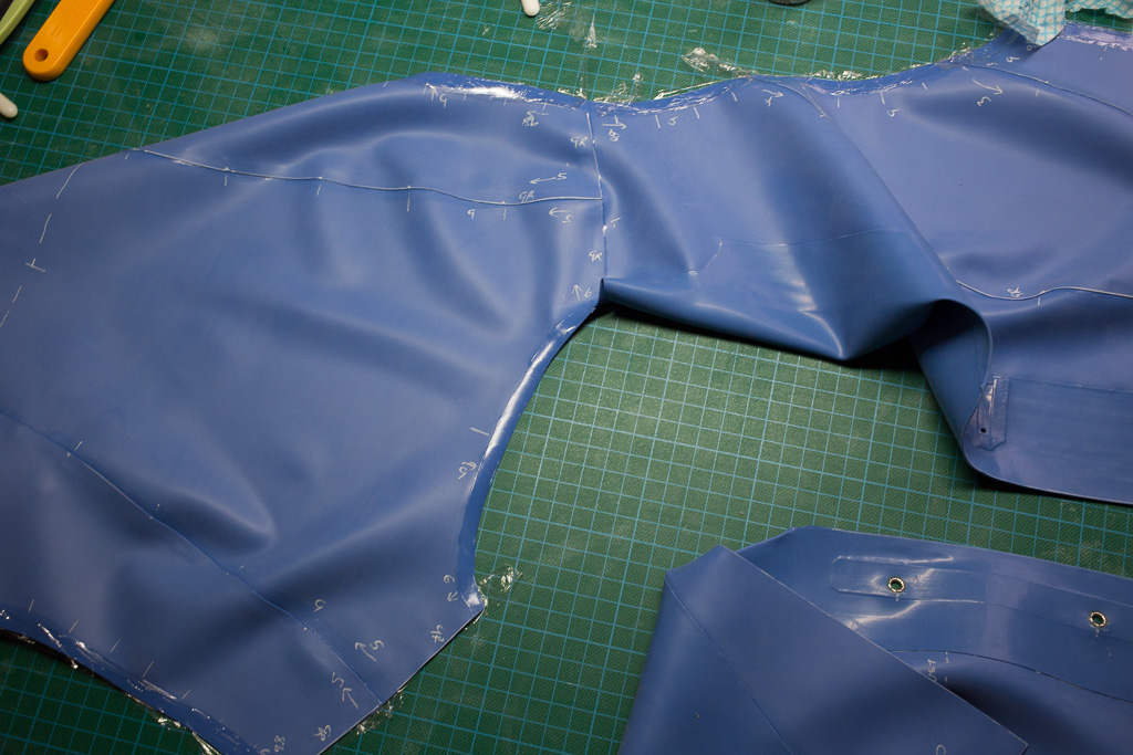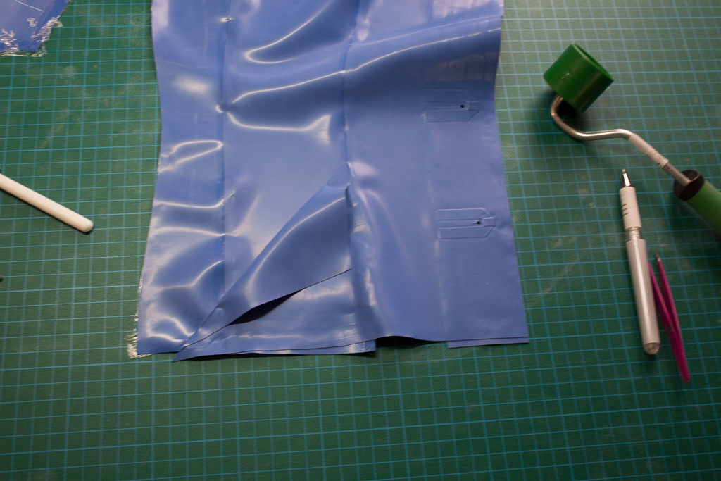 This is the tutorial for making the jacket for the PanAm inspired latex stewardess outfit.   The jacket is unusual in that it uses real buttons – seldom seen on latex clothing (due I think to the point stresses involved – issues that hopefully I’ve solved here).