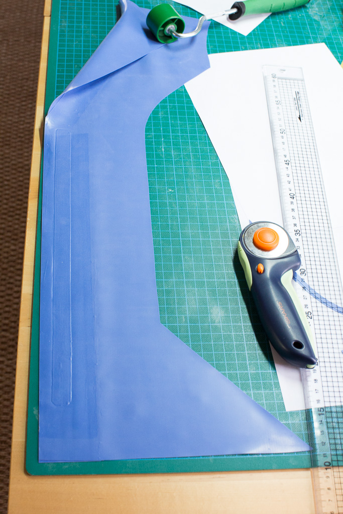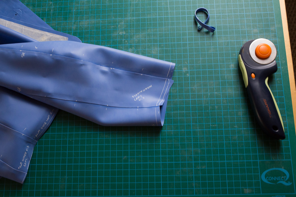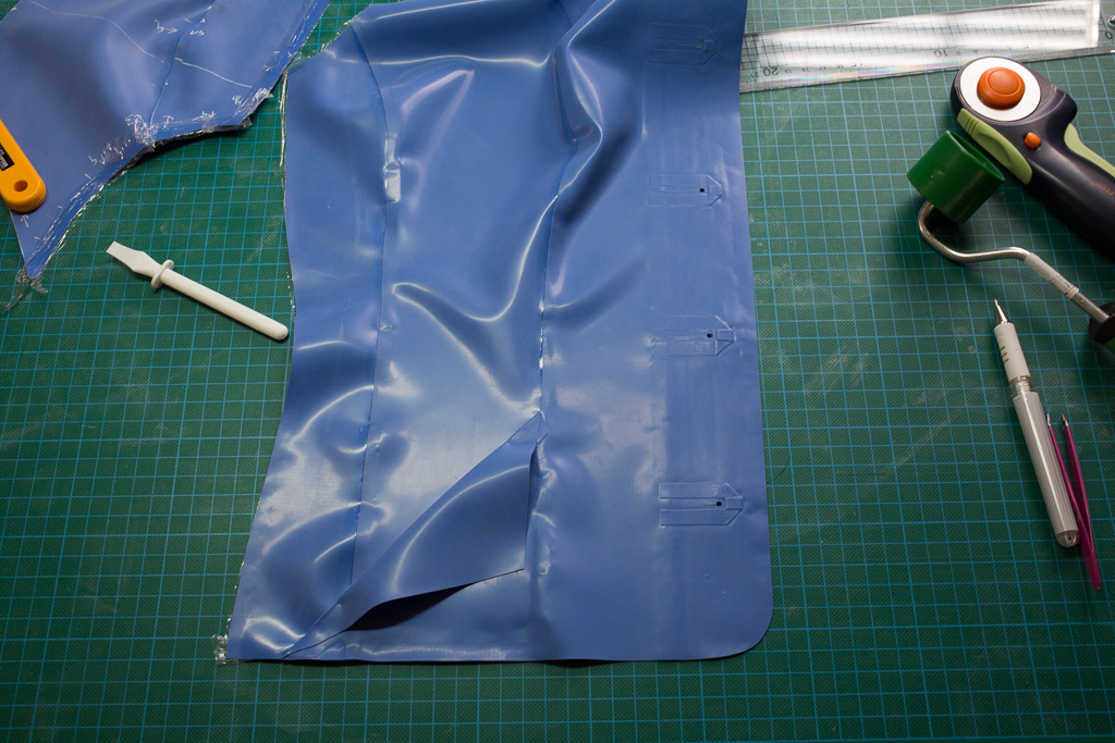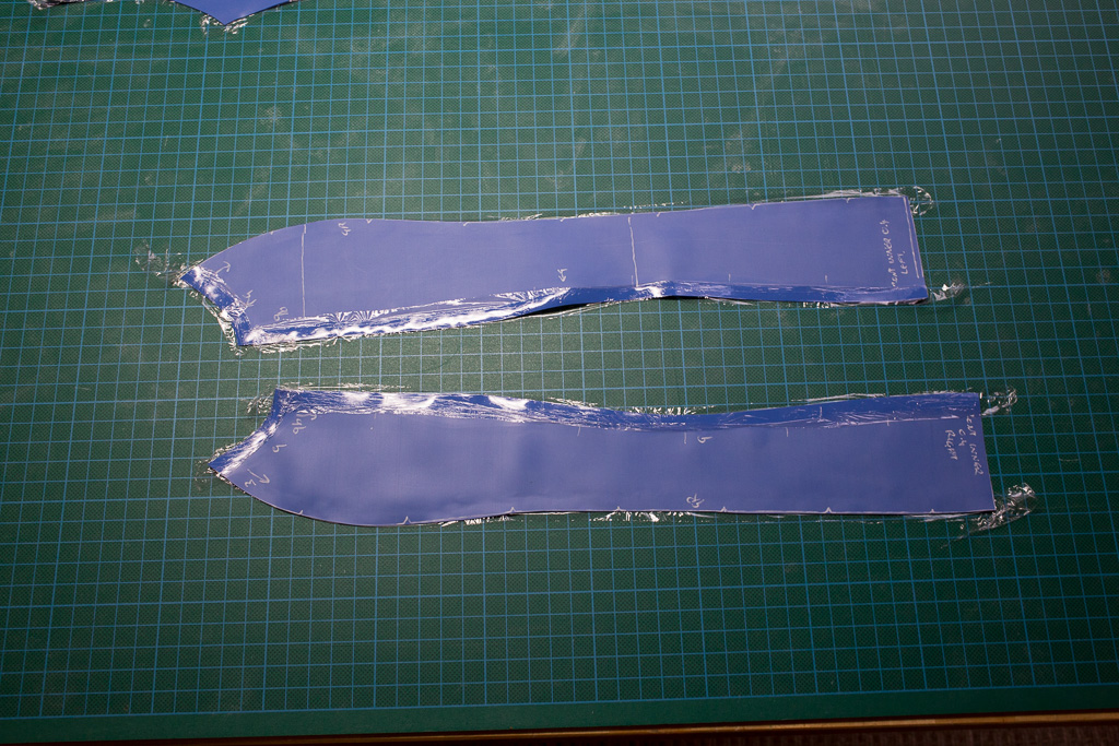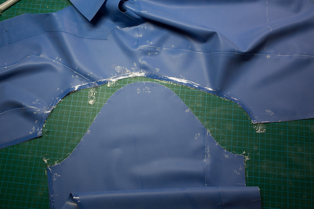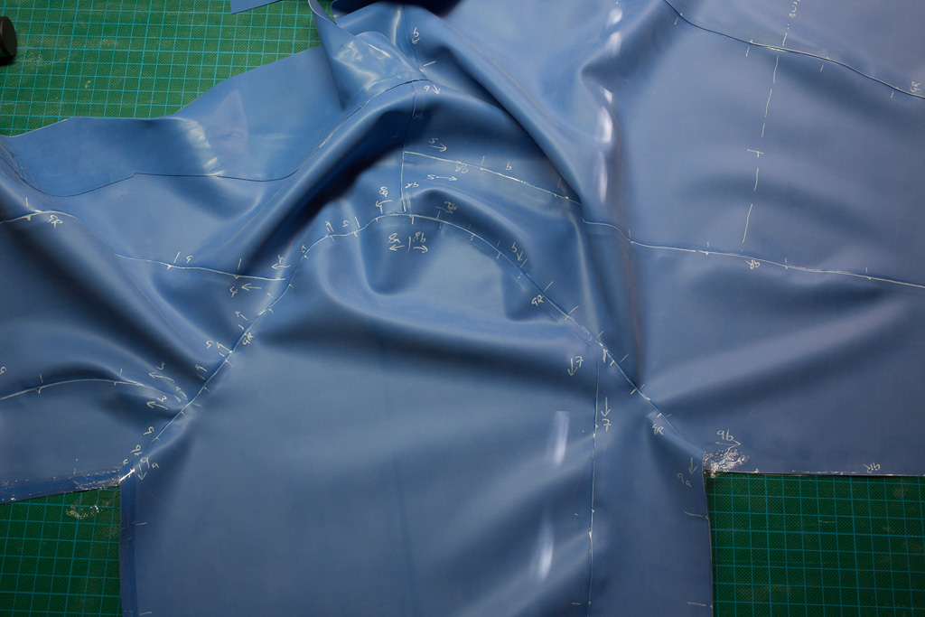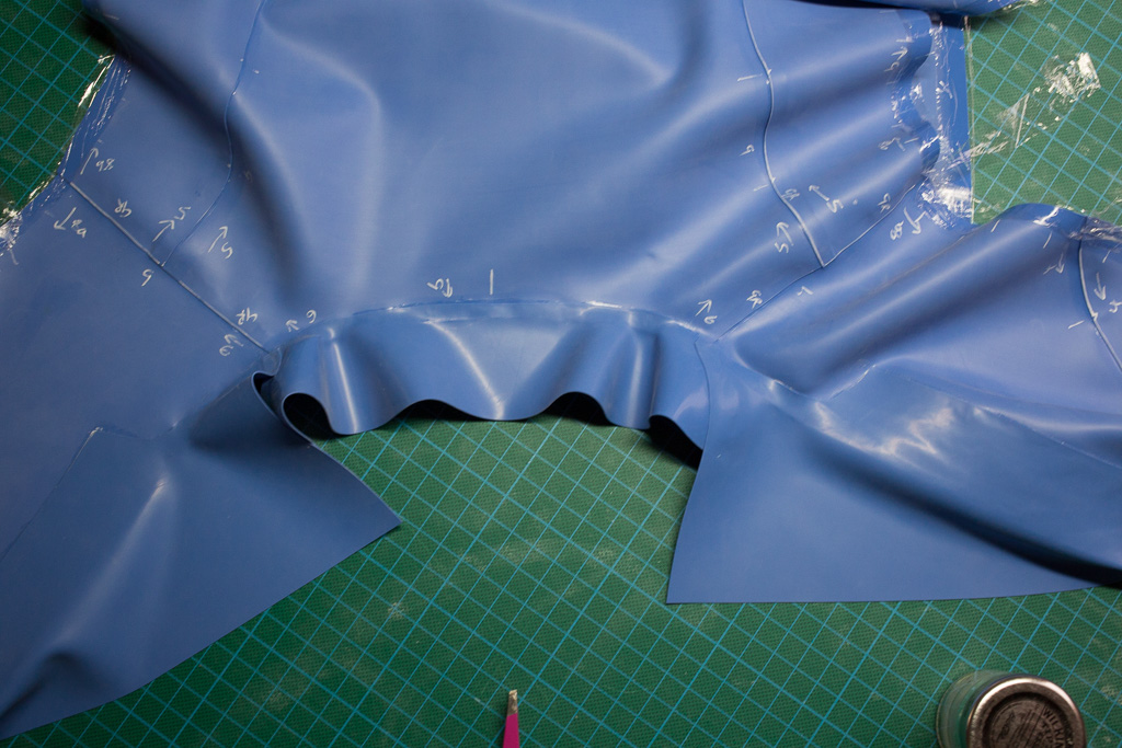 Trace around the paper pattern pieces onto the latex.  The edges that are not going to be glued should be cut 0.5-1cm larger than the marked edge so that they can be trimmed once assembled (step 11).