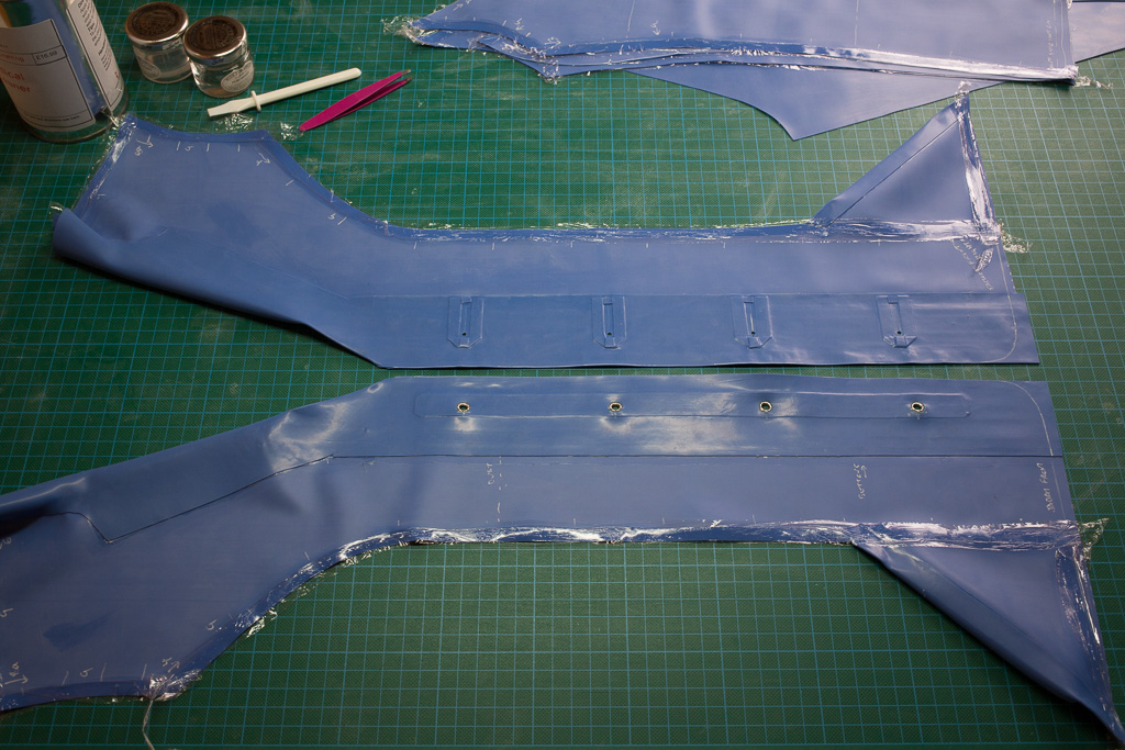 1. Thanks for your lovely feedback. I have uploaded the PDF of the pattern and linked to it from the how-to. Let me know if it would be useful to have the original iDraw files uploaded as well. I have also added, to the end of the jacket howto, some recent photos of the outfit being modelled. These photos also show the bag that I made (also entirely out of latex).