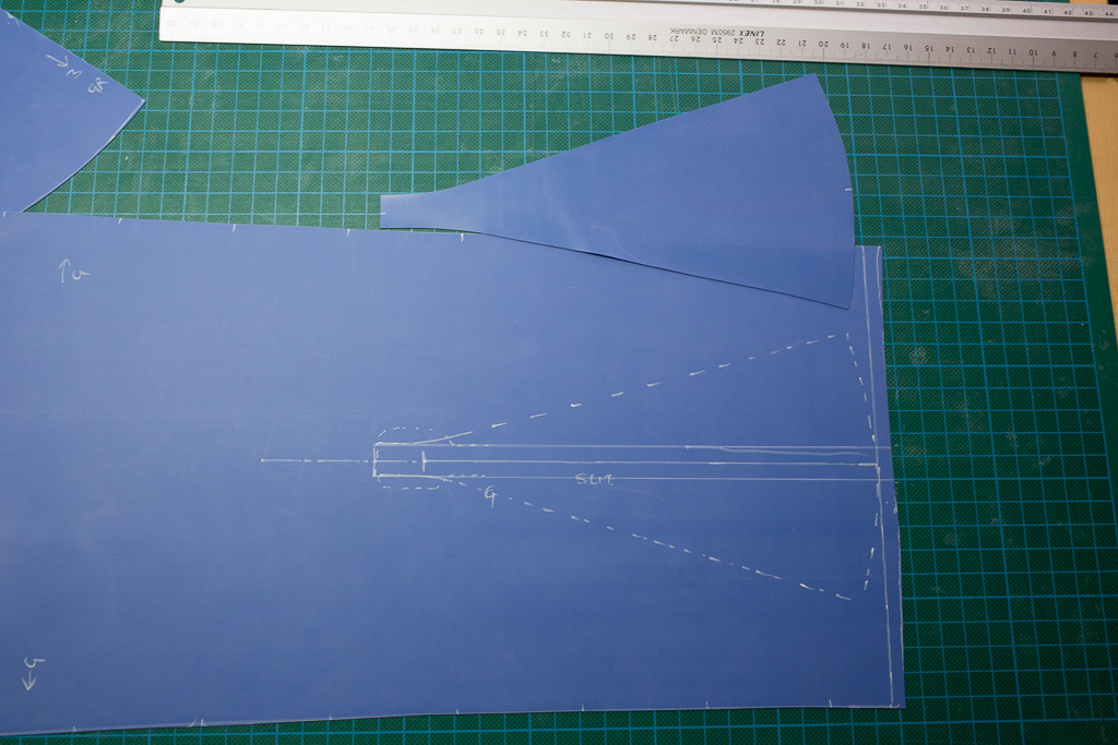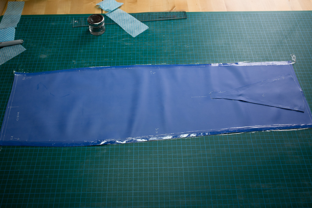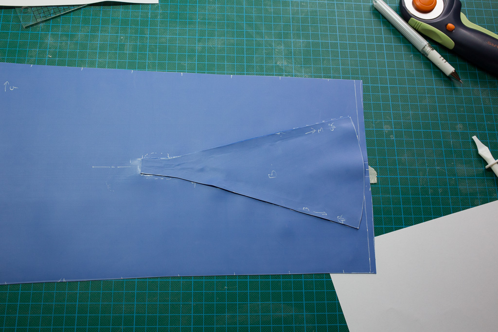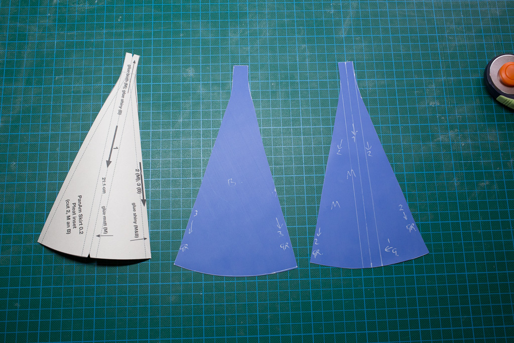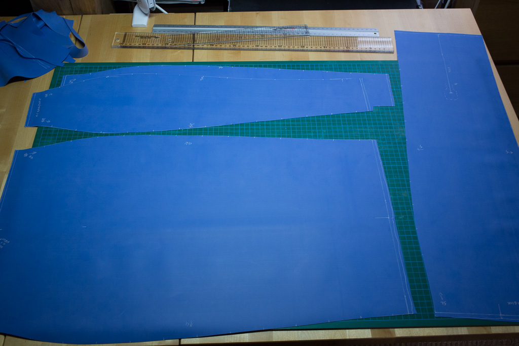 This skirt pattern is basically the same pattern that I created before, but with a self folding kick pleat at the rear. This means that the skirt retains its straight shape as if it had no slit, but does allow the wearer some movement.