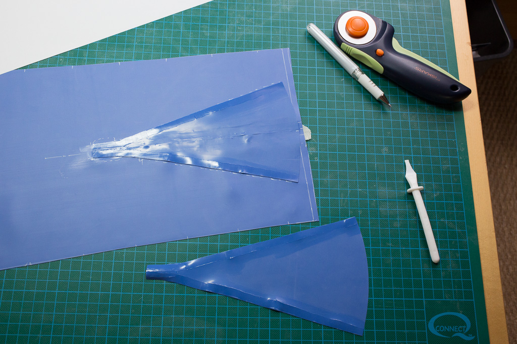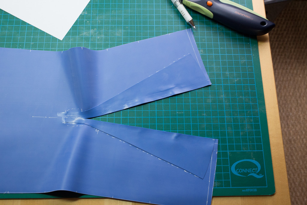 Then cut up the centre of the glued area. By attaching the pieces and the cutting we have a perfect edge alignment.